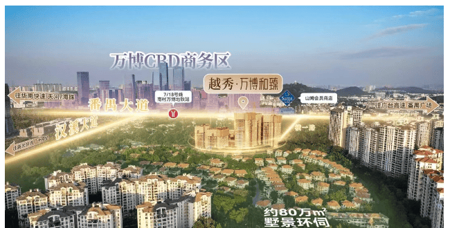 越秀·万博城|和臻坐落于广州市番禺区长隆-万博超级CBD,这是一个已经发展成熟且充满活力的商业圈。项目不仅靠近长隆旅游度假区,每年吸引超过4000万全球游客,还紧邻万博商务区,这里聚集了众多知名企业和互联网巨头。随着去年4月的扩容,长隆与万博两大经济圈深度绑定,形成一个规模超越珠江新城的超大型地标商圈。这样的地理位置使得越秀·万博城|和臻成为了一个兼具生活便利与投资价值的理想选择。
