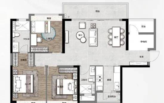 洺悦玉府提供多种户型选择,包括约105-125㎡的三至四房品质准现房。其中,105㎡的三房两厅两卫户型设计为纯南向且三开间朝南,超宽楼距保证了视野开阔;而125㎡的四房两厅两卫户型则是正南北横厅设计,配备超6米超宽景观阳台,能够欣赏到大夫山湖头排景观。所有户型均采用智能健康精装交付标准,注重细节打造智慧家。