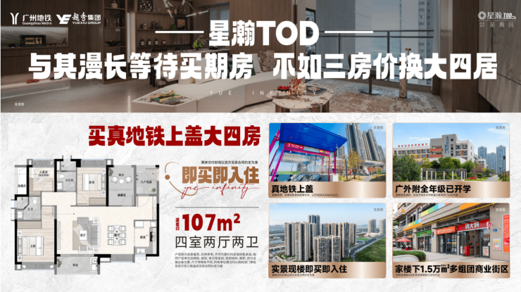 此次政策的出台,既为广州房地产市场注入了稳定预期,也为购房者带来了更多利好。尤其是“卖旧买新、以旧换新”政策的支持,将降低改善型购房者的换房成本,而存量房收购政策则能进一步消化市场库存,促进市场供需平衡。对于像星瀚TOD这样的高品质实景项目而言,政策红利的加持将进一步提升其市场竞争力。