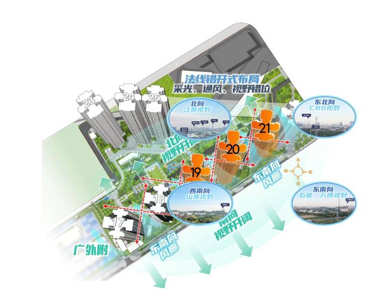 北区“臻境”组团作为项目的稀缺房源,仅余最后5套工抵清盘房源,堪称错过再无的珍藏之选。该组团最大的优势的便是极致的景观视野,南北双向无遮挡设计,让视野通透无界。北面可远眺三江汇聚的壮阔盛景,甚至能瞥见小蛮腰的璀璨轮廓;南面则能将南站城市景观尽收眼底,白天看车水马龙的繁华,夜晚赏万家灯火的静谧,每一幕都是生活的限定美学。