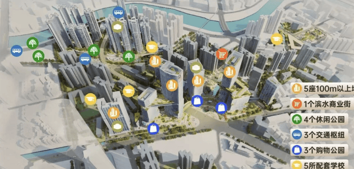项目规划 60 万平方米商业集群,包含 5 座超百米办公地标、3 座星级品牌酒店(含荔湾首家万豪福朋·喜来登酒店)及 3 座主题购物公园。当前已有喜茶、7-ELEVEN 等 23 家品牌商家意向签约,未来将形成乐活坊(家庭亲子)、艺享荟(文化生活)、潮趣里(潮流风尚)三大主题商业区。社区内部配建 4700 平方米商业,与滨水商业街形成互补,满足日常消费需求。虽然当前周边配套尚在完善中,但大城规划的商业体量足以支撑未来生活需求。