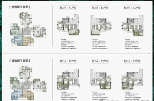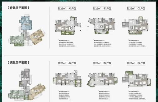 户型多样:提供从82㎡到125㎡不等的多种户型选择,满足不同家庭需求。