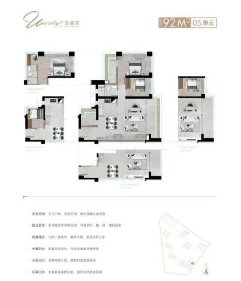 这款户型兼顾了居住的舒适度与实用性,是刚需进阶家庭的完美选择。它在有限的面积内,创造了无限的居住可能。无论是三口之家,还是二胎家庭,都能在这里找到舒适的生活节奏。南向的朝向,让冬日暖阳洒满全屋,夏日凉风穿堂而过,四季皆宜。全景飘窗的设计,不仅增加了室内的采光面,更提供了一个休闲观景的小角落,让生活在细节中绽放光彩。力诚榕诚湾的89-92㎡户型,用空间魔法演绎了生活的真谛,是刚需购房者的不二之选。