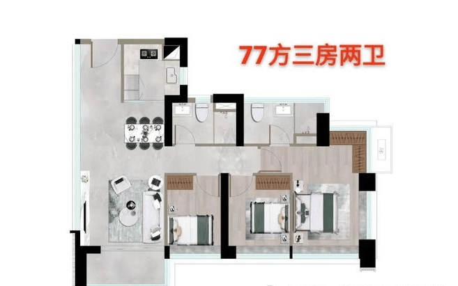 6.1 77㎡紧凑三房,刚需首置的高性价比之选