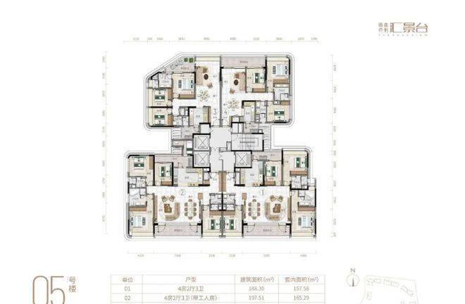 户型设计亮点满满,产品涵盖多种面积段,实用率约 82 - 84% 。从外立面到室内空间,有诸多创新突破。外立面采用陶板外墙和铝板幕墙结合,不仅美观,还节能环保、防腐蚀。室内有很多弧形设计元素,如弧形玄关、圆角岛台等,增加空间流动感,提升生活品质。作为广州首个恒适系统科技健康豪宅,为业主打造恒温、恒湿、恒静、恒净、恒氧、恒智的健康新生态。