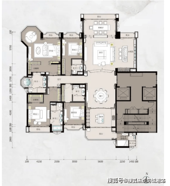 317㎡六房二厅六卫:总价4000万起,六房设计适配大型家族居住,空间布局合理,动静分离,客厅、餐厅分区明确,兼具实用性与私密性;户户南北对流,江园双景尽收眼底,每间卧室均配备独立衣帽间与卫生间,高端配置拉满,适合多代同堂、注重居住品质的家族。
