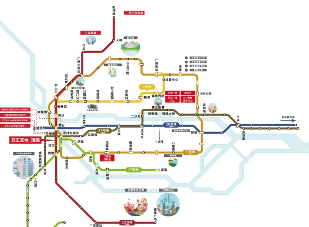 交通出行十分便捷。项目附近有花地湾 TOD 枢纽,是地铁 1 号线、25 号线花地湾站的交汇换乘点,距离地铁花地湾站约 800 米,步行 12 分钟左右。1 个站到达芳村 TOD 就能换乘 11、22 号线地铁,其中 11 号线堪称 “换乘之王”,全线 32 个站点中有 26 个为换乘站,16 个与既有线路换乘,这使得从项目出发去往广州各区都相当方便。自驾的话,周边花地大道、龙溪大道等线路,为出行提供了更多选择,无论是日常通勤还是外出游玩,都能轻松抵达目的地。