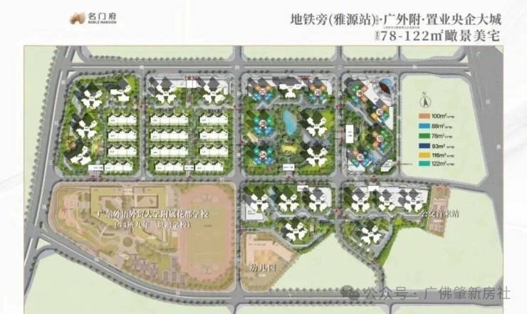 项目教育配套优势极为突出,花都区首座公立九年一贯制广东外语外贸大学附属花都学校的引入,填补了区域内优质公立九年一贯制学校的空白,为业主子女提供了优质的教育资源。学校含 36 班小学与 18 班初中,社区内自带 18 班幼儿园,形成 12 年家门口优质教育体系,解决家长对优质教育资源的需求,同时提升项目的整体价值与竞争力。学校于 2025 年 8 月交付政府,2025 年 9 月正式开学,具体招生政策以教育局公布信息为准。
