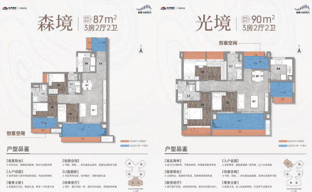 在售户型涵盖了从71㎡到114㎡的不同面积段,满足了不同家庭结构的需求。其中,高层户型面积分别为71㎡、81㎡、87㎡、90㎡,均为三四房设计;小高层户型面积则为93㎡和103㎡,主要为四房设计。所有户型均采用全朝南开间设计,使用率超过103%,确保了良好的采光和通风条件。