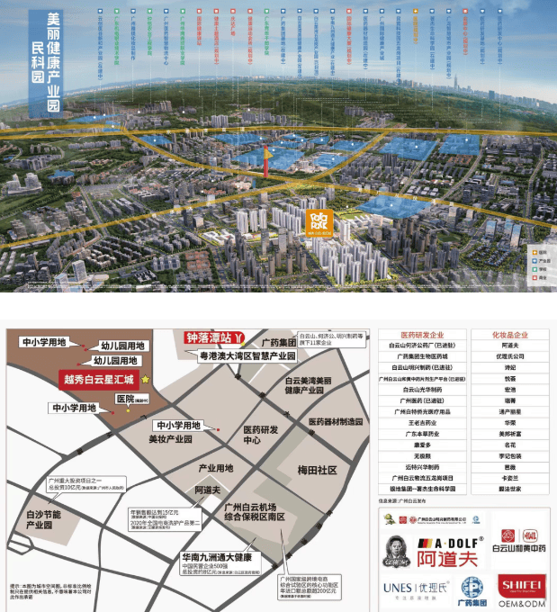 旭辉光屿南方所在的区域是广州大健康产业基地的一部分,该基地已吸引了包括何济公、明兴制药、广药集团、和黄中药在内的29家知名健康产业企业入驻。此外,这里还有广州第二大学城,已有13所高等教育院校落户,如仲恺农业工程学院、广东白云学院等,为湾区培养了大量科技人才。