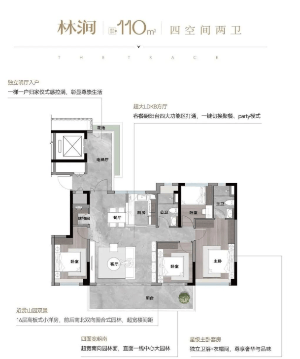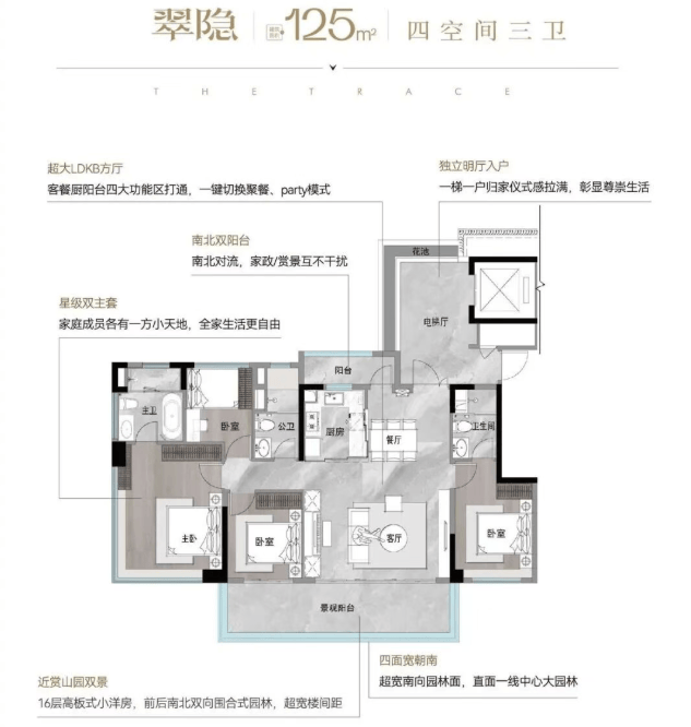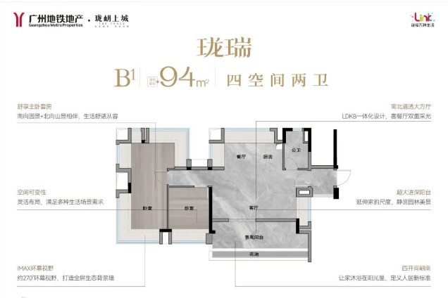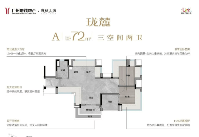 一期产品包括7栋塔楼和4栋小高层板楼,均采用非超高层设计,密度低,采光良好。最小户型为72平方米的三房两卫,最大户型为125平方米的四房双主套板楼户型,每个户型都配备了独立入户花园和270°景观面。特别是建面约94平方米的四房两卫带主套房,能够满足多代同堂家庭的需求,实现一步到位的生活品质。