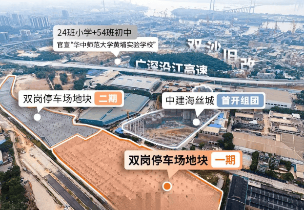 虽然该项目二期规划了一所小学和一所幼儿园,但目前品牌尚未确定。首推的一期交付时,不确定二期学校是否能同步开学。根据黄埔的小升初政策,未来可能需要通过电脑派位来决定初中入学。不过,项目周边有中建海丝城配建的华中师范大学附属学校,未来可能会有机会共享教育资源。