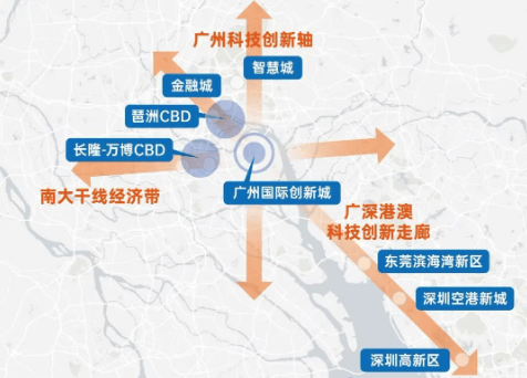 星河·盛世锦城位于广州市番禺区,紧邻万博CBD与余荫山房北侧的板桥地铁站,地理位置优越。作为一座世界级的城市低密度大城,它不仅占据了南大干线经济带的核心位置,还处于广深港澳科技走廊的关键节点,是连接珠三角东西岸的重要发展走廊之一。