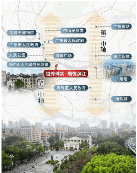越秀・珠实・皓悦滨江位于海珠滨江中板块(海珠桥与海印桥之间),根据《海珠区国土空间总体规划(2021-2035)》,该区域定位为 “广府文化宜居带”,未来 3 年将投入超 300 亿元推进 10 个重点项目,包括珠江岸线美化、历史建筑修缮、商业业态升级等。板块稀缺性显著:滨江中宅地断供超十年,现有住宅多为 2000 年前后建成的老旧小区(如中海名都、富基广场),新项目供应极少;区域内广府文化底蕴深厚,孙中山大元帅府、海珠桥等历史地标环绕,年接待文化游客超 200 万人次。