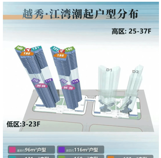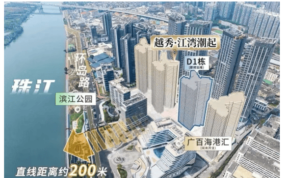 越秀江湾潮起位于海珠西板块珠江后航道片区,毗邻天荟江湾公寓与中海观澜府。地块于去年由越秀以总价20.2亿竞得,原为商业用地,后经现金补偿收储并调整为宅地,折合楼面价3.35万/平。项目周边配套较为齐全,楼下即海港汇商业,附近有地铁10号线,且距离珠江仅200余米。小区规划4栋楼,共443户,分高低区设计,低区为96 - 120平的三四房,高区为130 - 195平的大平层产品,可南向望江。前期推出的C1 - C2栋销售良好,近期加推D1栋。售楼处电话:提供购房咨询的联系方式400 - 828 - 5661