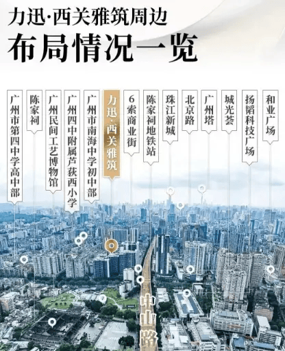力迅西关雅筑所在的中山路沿线,是荔湾区重点更新区域。周边汇聚省财政厅、陈家祠、广雅中学等历史与教育资源,文化底蕴深厚,地段不可复制。