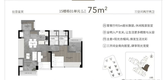 越秀大学星汇锦城的户型设计充分考虑到了现代家庭的需求,提供了从75㎡至125㎡的多样化选择。所有户型均采用全南向设计,保证了充足的采光和通风效果。特别是部分户型的使用率超过100%,并且配备了宽敞的主卧室套房和衣帽间,提升了居住的舒适度。