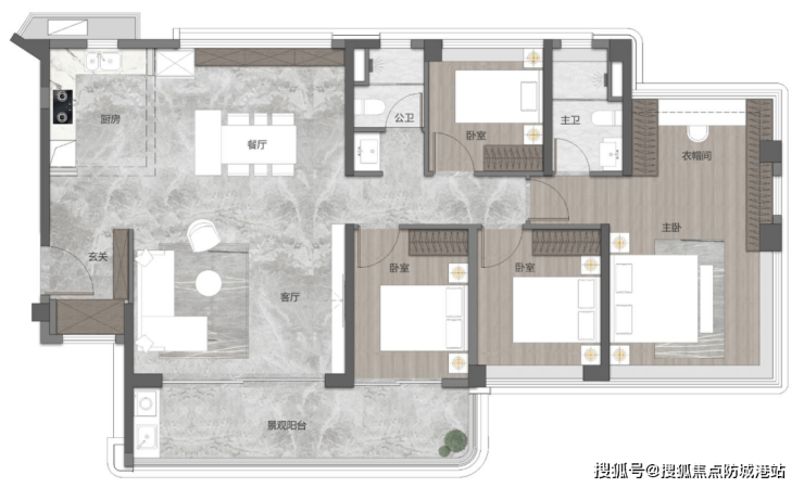 119㎡四房两厅两卫:南北通透,独立入户玄关,步入式套房设计