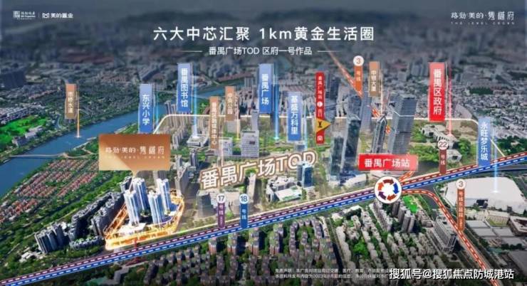 路劲美的隽樾府坐落于广州番禺广场板块,毗邻地铁3/18/22号线番禺广场站,5站直达珠江新城。作为粤港澳大湾区枢纽节点,板块内汇聚万达广场、永旺梦乐城等商业配套,医疗资源覆盖番禺中心医院,生活便利性全面领先。