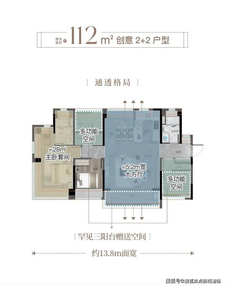 🔹 户型设计亮点:89㎡三房南北通透,142㎡四房双主卧套间,得房率超85%。