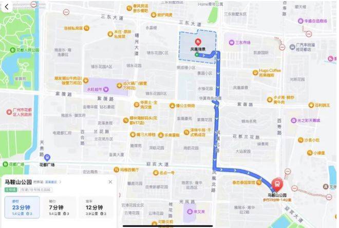 交通上,项目步行至马鞍山公园站 1.4 公里,大约需要 23 分钟。虽说不是楼下就有地铁口,但在花都,大多数楼盘也都这样。周边道路四通八达,沿凤凰北路可北上融创,南下花都湖,自驾出行较为方便,对于习惯开车的居民来说,能够轻松到达花都区内各个区域。