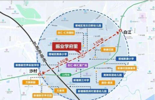振业学府里地处增城新塘板块,紧邻13号线沙村站,距离白江站约一站路,形成对区域主要通勤节点的便捷接入。地铁13号线可直达黄埔区及天河区核心地段,接驳广州市中心与主要产业区,提供高效的通勤条件。