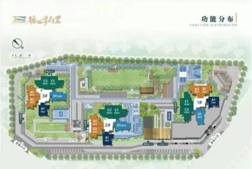 振业学府里采用蝶式楼栋布局,楼栋360°无遮挡,营造宽阔视野与良好通风采光。社区内部规划健康跑道、复合球场及社区剧场,兼顾儿童、青少年及老年人不同年龄段活动需求。高层住宅远眺东江,增强居住体验的景观价值。社区开放空间设计结合绿化景观和休闲设施,形成全龄段生活空间。