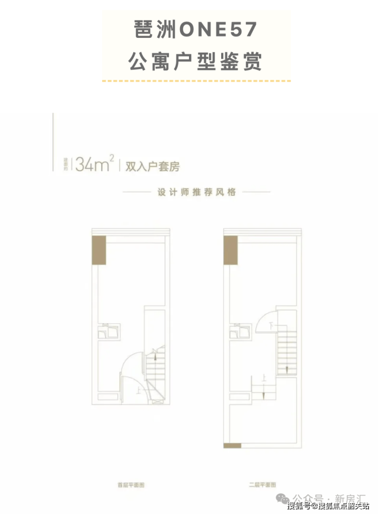 这是琶洲ONE57最具代表性的产品。虽然建筑面积仅34㎡,但通过4.5米层高打造出上下两层空间,形成“双钥匙”结构——即上下两层可独立出租或使用,互不干扰。这种设计极大提升了使用效率和租金收益能力。