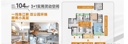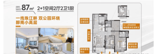 【主推户型】:建面约87㎡/104㎡/125㎡荔湾醇南瞰江小高层 实景现楼,所见即所得