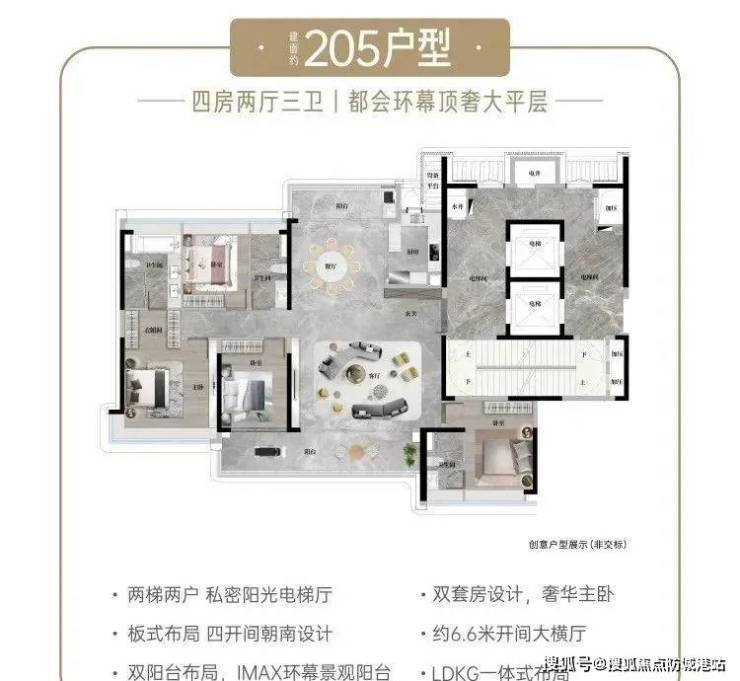 户型亮点:主推建面约140-253平方米四至五房奢居产品,纯南向一字板式设计,实现南北对流,通风采光效果远超市场同类产品。140平方米户型配备双套房系统,主卧带独立衣帽间及卫浴;200平方米以上大平层设中西双厨+270°观景阳台,客厅面宽达7.8米,可俯瞰长隆森林全景。