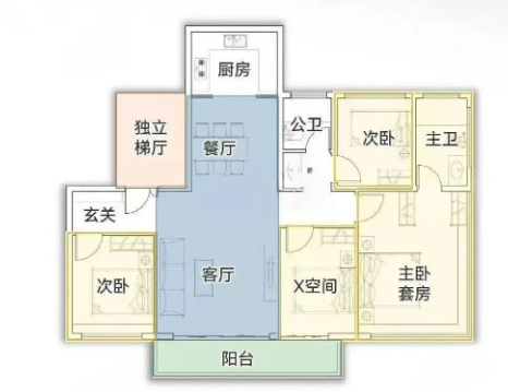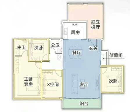 主力产品集中在110至130平方米的板楼户型,全部采用2梯2户设计,实现专梯专户。以110平方米户型为例,LDKB(客厅、餐厅、厨房、阳台)一体化布局,南北对流,阳台进深充足;主卧配备步入式衣帽间,且三面采光无结构柱遮挡,视野开阔。130平方米户型则进一步强化公共区域尺度感,L型电梯厅自带储藏空间,户内外收纳分区明确,大方厅面宽接近7米,家庭聚会或日常活动都显得从容。即使是88至99平方米的塔楼产品,也尽可能做到南北通透,兼顾刚需与刚改需求。