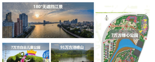 三大公园环绕:项目南侧有金沙洲绿心公园,周边还有金沙洲滨江公园、白云儿童公园,三大公园环绕,形成完善的休闲景观体系,满足业主不同的休闲需求。