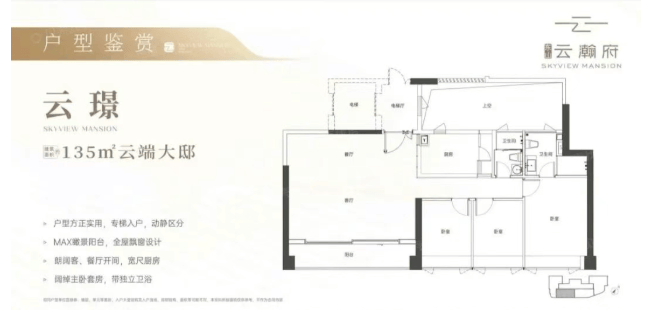 越秀·云瀚府在产品打磨上极尽匠心。住宅层高3米,营造开阔舒展的室内空间;全屋高使用率设计,让每一平方米都物尽其用。项目更打造双空中泛会所——1楼设有7米挑高独立入户大堂,并规划“三点半啡吧”“四点半学堂”“六点半茶居”等全龄友好社交空间;10楼则设全龄段空中泛会所,成为邻里交流、亲子互动、静心阅读的理想场所。