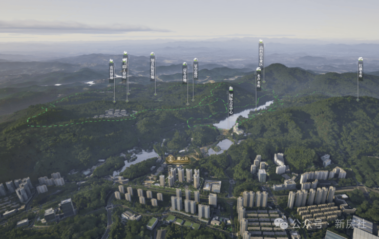 长岭居被定位为广州东部山水新城生态宜居示范区。板块更是以“绿色、低碳、智慧”为理念,构建了一座集高端居住、研发总部、疗养度假、生态休闲、先进制造五大功能于一体的未来之城。很多人提到长岭居,第一印象都是宜居。事实也是如此,在长岭居34.9平方公里的规划建设用地中,约20平方公里被划为法定自然保护区,真正实现了“半山半城”的理想格局。这种富氧山水休闲区,也是广州难以复制的资源。