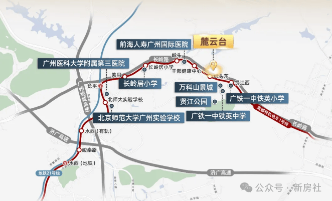 3公里范围内9所学校,享受黄埔区第一梯队教育配套,距离项目最近的是广铁一中铁英小学和中学,还有长岭居小学。