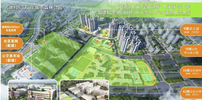 教育配套是一大亮点。配备 9 班规模幼儿园,42 班小学和 36 班初中,共 3600 个学位,比业主户数还多。成功引进公办名校番禺中学办学,师资从本校抽调优秀教师,主要面向小区业主子女招生。配建的九年制学校已开学,孩子在家门口就能享受优质教育,家长接送方便,基本能实现目送式教育。