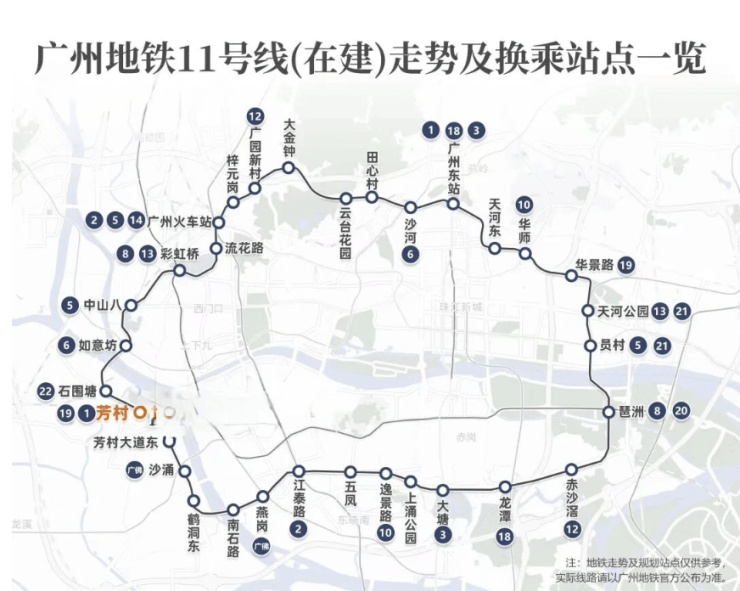 地铁11号线(在建):广钢新城站约1公里,2026年通车;