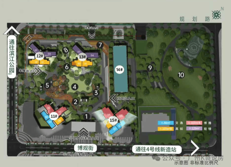 项目距离地铁4号线新造站约1.6公里,小区东门开放可以直连广医南路,距离地铁站可以控制在800米左右,算是步行可以接受范围内。