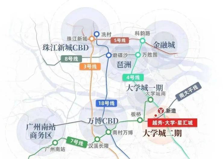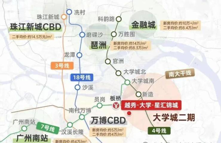 4号线1站可达大学城、3站万博、4站琶洲、5站金融城,为居民提供了更加便捷的出行选择。