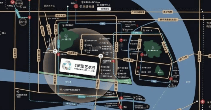 - 周边凤凰湖公园、大山乸森林公园、南沙青少年宫、美术馆(规划)环绕;