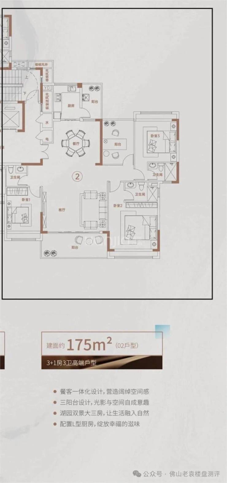 入门级刚改主力户型为建面约118平方米的三房两厅两卫。该户型采用两梯三户设计,南北通透,竖厅布局,拥有6.2米南向观景阳台。这样的设计不仅让室内光线充足、空气流通,还将空间感延伸到了户外,仿佛置身于大自然之中。其空间利用率极高,功能分区明确,动静分离合理,非常适合年轻家庭或三口之家居住。