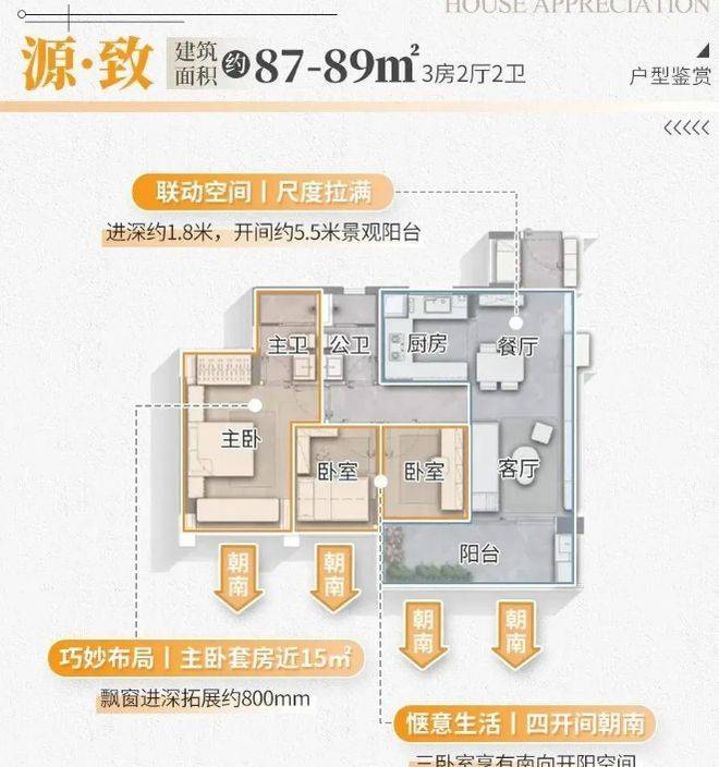 项目的产品设计与品质令人瞩目。户型实用率约 100%,得房率高,在市场上具有明显优势。以 76㎡三房两厅两卫户型为例,空间利用极为高效,大横厅设计使室内空间开阔通透,增强了家庭成员之间的互动交流;大阳台设计不仅增加了室内采光和通风,还为居民提供了一个舒适的休闲空间,可用于种植花草、晾晒衣物或享受阳光。园林规划以 “活力剧场,都市森林” 为理念,打造约 4.4 万平方米中央园林,营造出充满活力与自然气息的居住环境。最大楼间距约 160 米,保证了每栋楼都能拥有充足的采光和通风,同时减少了楼栋之间的相互干扰,为居民提供了更为私密、舒适的居住空间,提升了整体居住体验。