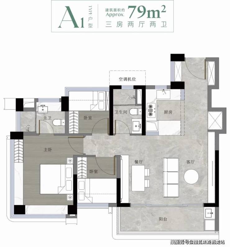 得房率:超100%(新规户型,79㎡实得面积约85㎡);