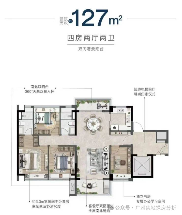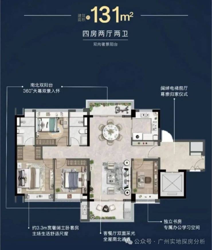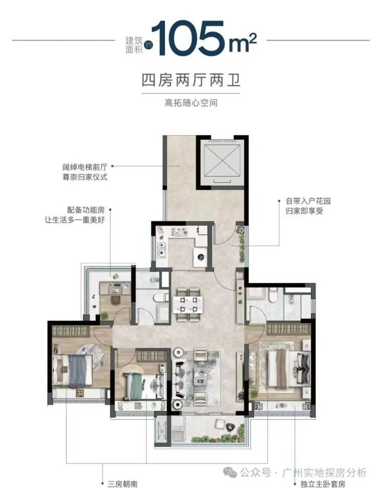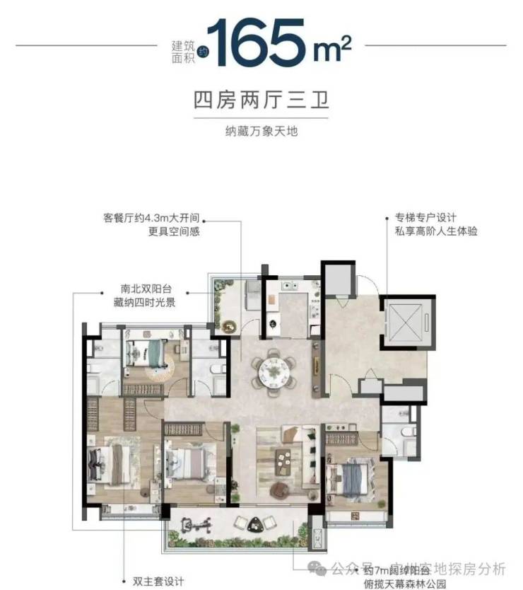 项目一共10栋楼,楼高16-25层,楼间距约200米,真正户户瞰景,主推建面约104-168㎡全四房户型,两梯两户或两梯三户设计。