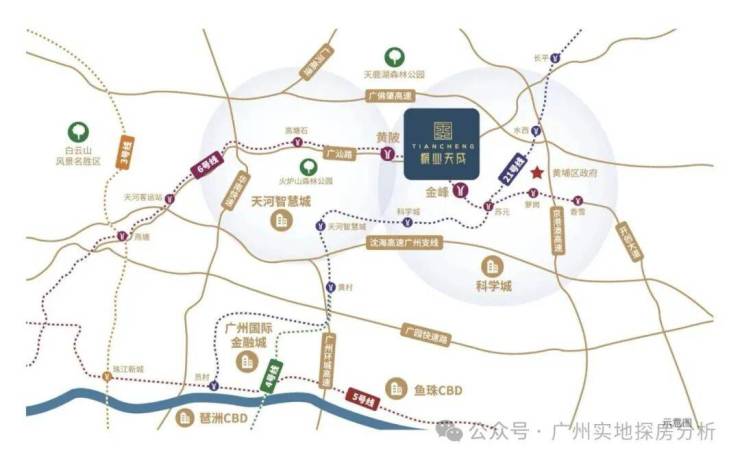 项目位于广州第三发展中轴线科技创新轴,天河智慧城和黄埔科学城双城交汇之地,一步天河。