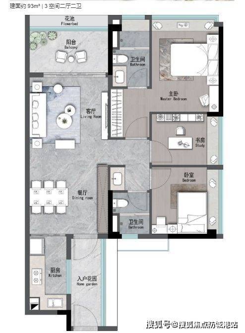 93㎡三房两卫:南北通透,动静分区,适合三口之家;