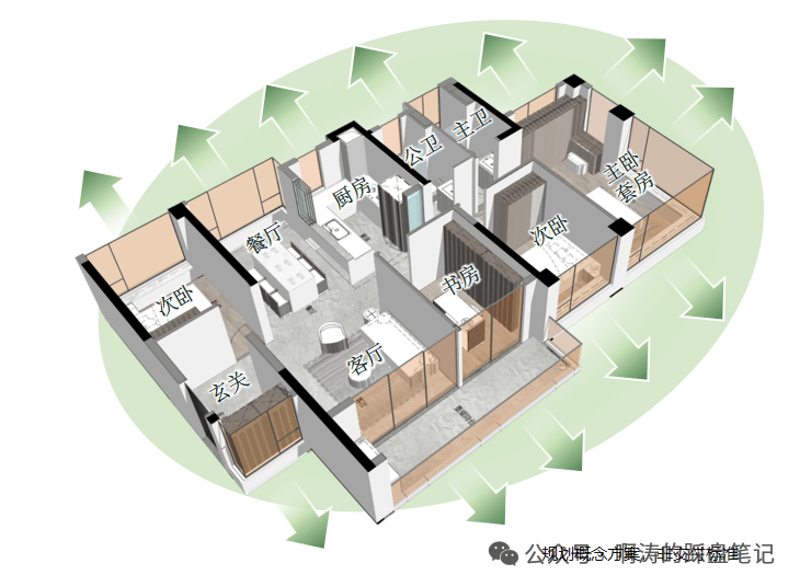 🔸扣住每一个广府居住细节:空间五开间朝南、全屋南北对流