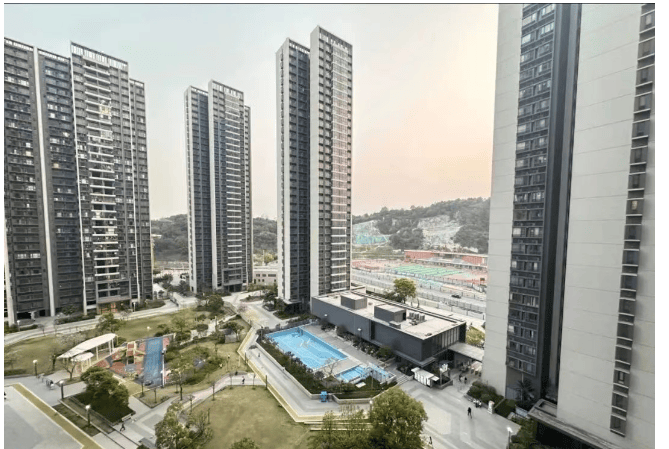 富力新城由知名开发商打造,总占地约61万平方米,规划总建面近200万平方米,是黄埔少有的超大型旧改综合体项目。项目共分五期开发,目前一期已全面交付入住,二期为现房状态,于2023年6月30日完成精装交付,实现“所见即所得”。二期涵盖9栋高层住宅,提供约1645户精装修单位,主力户型涵盖73至120平方米的二至四房,满足刚需、改善等多元家庭结构需求。项目整体容积率为5.02,得房率高达83%,在同类高密度社区中表现优异。绿化率达35%,车位配比约1:1.12,由知名物业提供服务,管理费为2.95元/㎡/月。现房销售模式极大降低了交付风险,尤其适合注重确定性与生活效率的购房者。