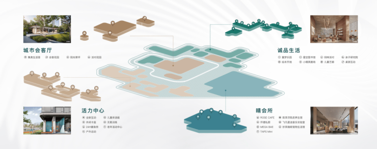 项目内部配备了“晴会所”,以瑰丽酒店为范本,涵盖怀德私厨、茶室、行政酒廊、健身房、书吧、咖啡吧、泳池等功能场景。此外,社区内还设有图书馆、妈咪派对、亲子研究院、童梦乐园四大功能空间,以及【翠街市】商业街区,引进了多家知名品牌商户,打造多维度的社交生活体验。