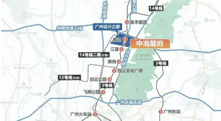 中海麓府位于白云新城CBD中轴,紧邻广州设计之都(粤港澳大湾区最大设计产业集群,2025年预计年产值超500亿元),坐享区域发展红利。项目距地铁2号线黄边站约500米(实测步行6分钟),2号线串联白云机场、广州南站,15分钟直达白云新城,40分钟通达珠江新城。自驾经华南快速三期、机场高速,15分钟覆盖核心商圈,30分钟畅达全城。